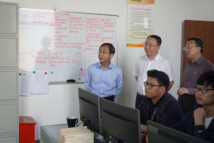 吳詩東一行先后到集團(tuán)黨性教育體驗(yàn)室、職工之家、匯金砂業(yè)智慧河砂運(yùn)營調(diào)度中心機(jī)房、市綜合文化藝術(shù)中心、蟠龍大橋項(xiàng)目等調(diào)研指導(dǎo),詳細(xì)了解集團(tuán)黨建工作、經(jīng)營業(yè)務(wù)及項(xiàng)目建設(shè)開展等情況。