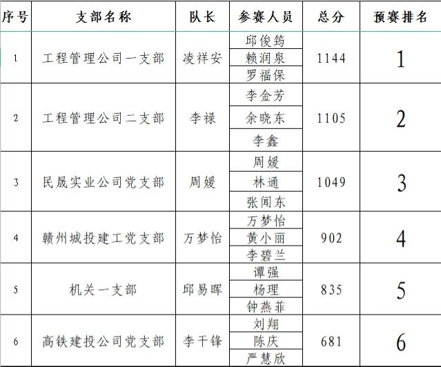 (贛州城投集團(tuán)黨委黨史學(xué)習(xí)教育知識(shí)競(jìng)賽預(yù)賽結(jié)果)